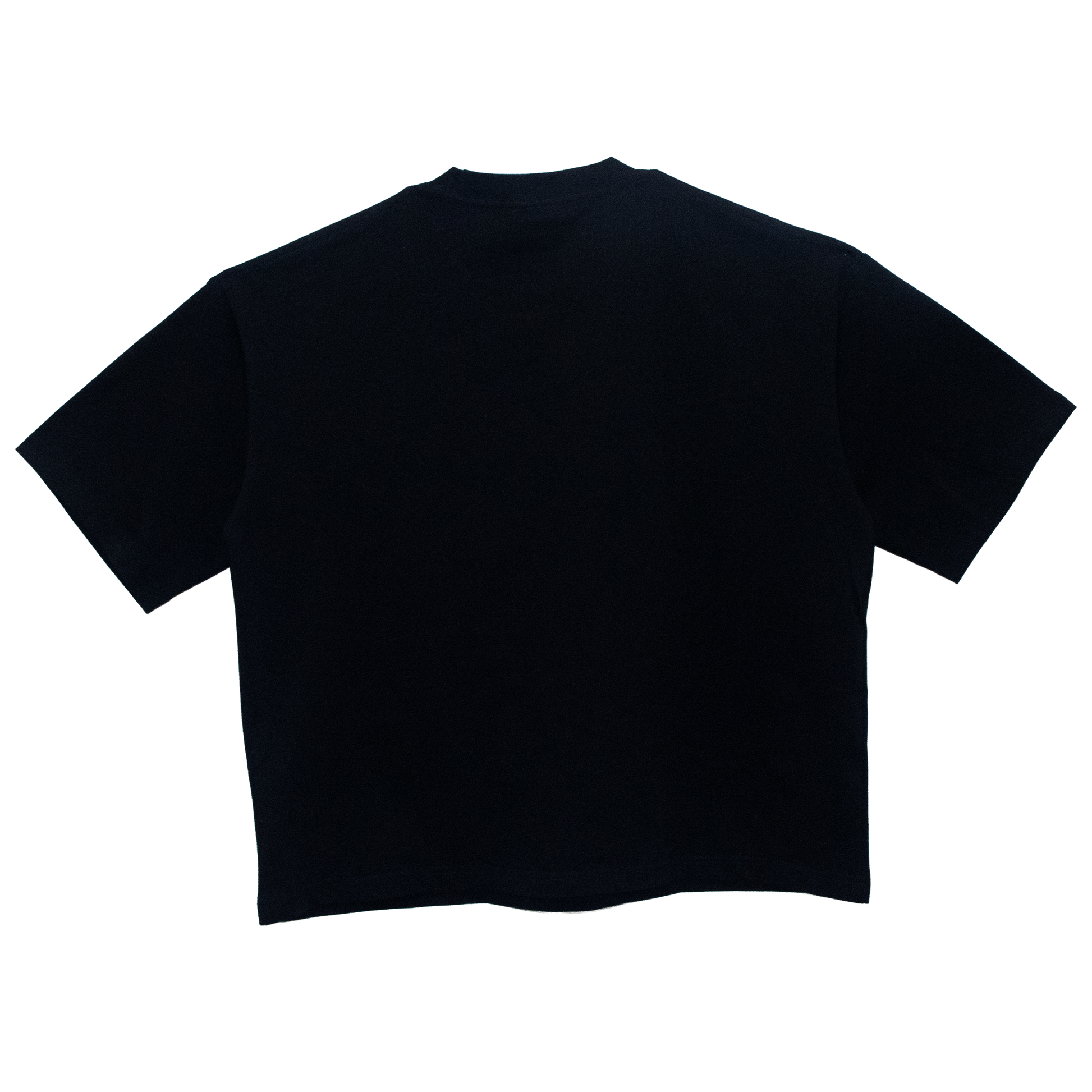 Boxy, cropped tee built like a late-night radio promo shirt. Deep black base with an oversized VEESE 4.04 FM ATLANTA graphic in a sunset gradient across the chest and the “Changing Streetwears Sound” tagline underneath.
